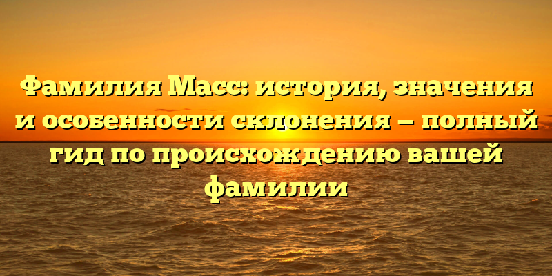 - Открытие тайн рода Масс: история, значения и правила склонения фамилии – полный путеводитель по происхождению вашей фамилии