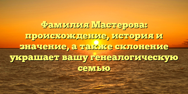- От истории до генеалогии: происхождение и значение фамилии Мастерова и правила ее склонения в генеалогической семье