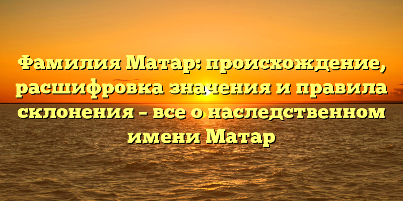 - Фамилия Матар: происхождение и значение, а также правила склонения этого наследственного имени