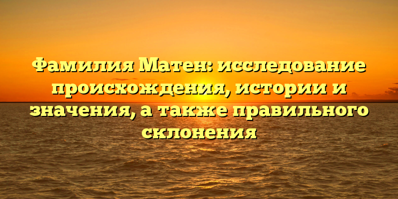 Отследите свое происхождение: исследование фамилии Матен и правила ее склонения.