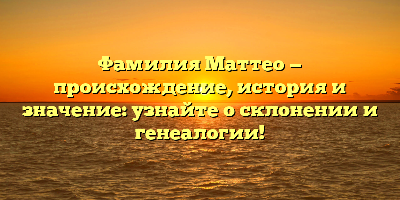 - Фамилия Маттео: всё о происхождении, истории и генеалогии рода — узнайте, как склонять и значение этого имени