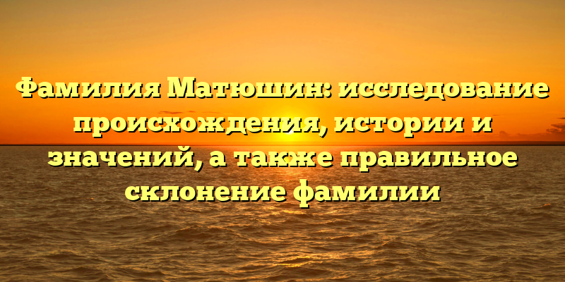 Фамилия Матюшин имеет славянское происхождение и встречается среди народов России, Украины, Беларуси. В этой статье мы рассмотрим историю и происхождение этой фамилии, а также правильное склонение для ее использования.