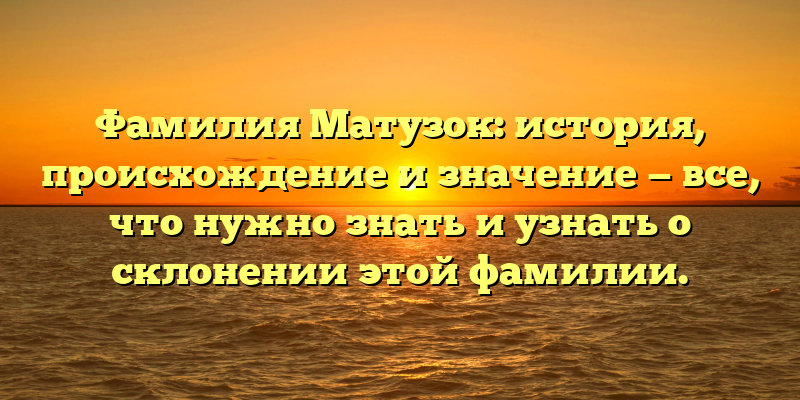 - Фамилия Матузок: происхождение, история и особенности склонения – раскрываем все тайны одного из самых интересных родовых имен