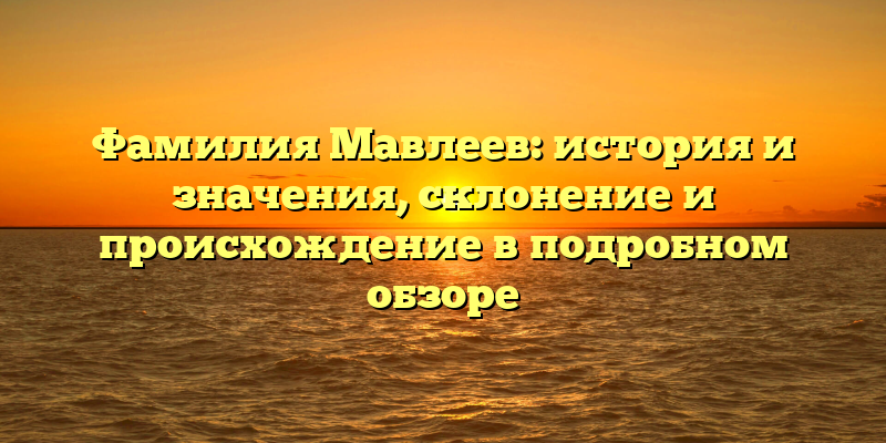 В этой статье мы рассмотрим подробно историю и значения фамилии Мавлеев, склонение и происхождение. Мы остановимся на основных фактах, связанных с этим именем, и познакомим вас с интересными историческими событиями, связанными с этой фамилией.