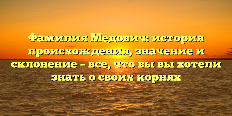 Фамилия Медович – одна из самых распространенных в Беларуси и Польше. Ее носители живут также в России и других странах. В этой статье мы расскажем о происхождении, значении и склонении этой фамилии, а также о тех, кто ее носил.
