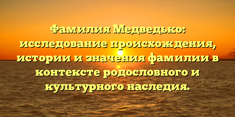 Исследование Фамилии Медведько: происхождение, история и культурное наследие