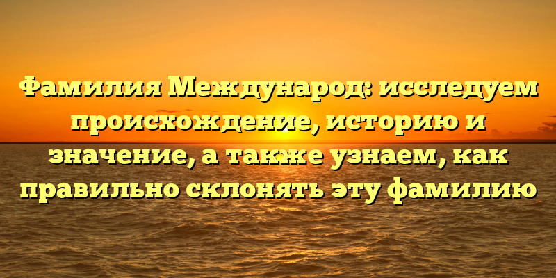 - Фамилия Международ: происхождение, история и правильное склонение — полное руководство