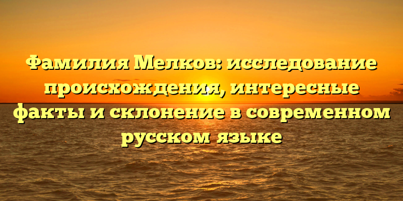 - Фамилия Мелков: исследование происхождения, интересные факты и правильное склонение в современном русском языке