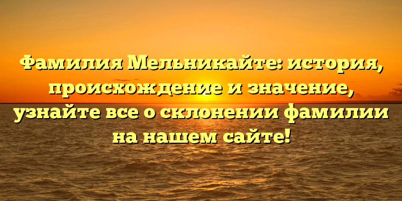 - Фамилия Мельникайте: происхождение и значение, секреты склонения — все в одной статье на нашем сайте!