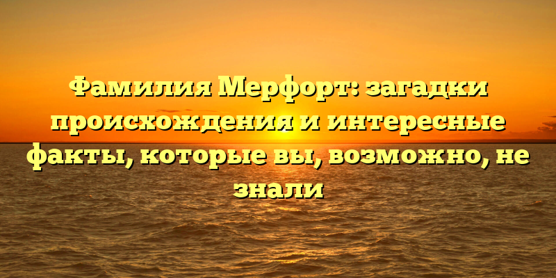 - Откройте тайны происхождения фамилии Мерфорт: Интересные факты и загадки, которые вам обязательно стоит знать