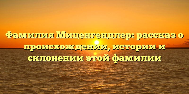 - Фамилия Миценгендлер: история происхождения и склонения этого редкого немецкого имени