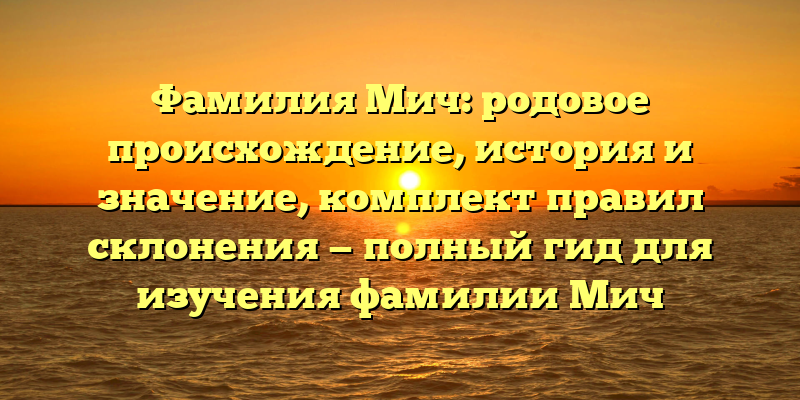 Фамилия Мич: происхождение, история и правила склонения — полный гид для изучения этого именитого рода.
