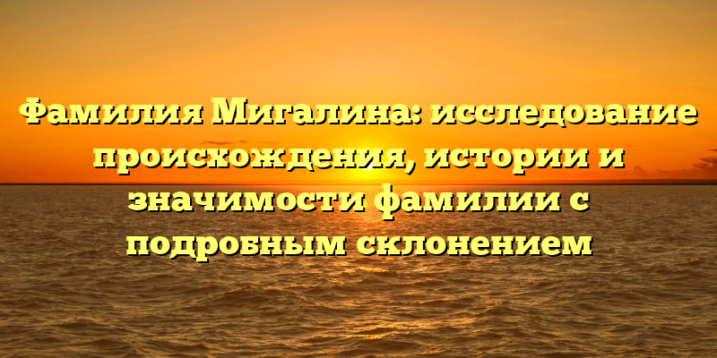 От истории до наших дней: исследование происхождения и значения фамилии Мигалина с полным склонением