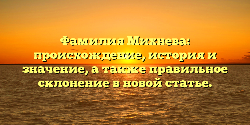 - Фамилия Михнева: происхождение и история, значение и правильное склонение в новой статье — всё, что нужно знать!