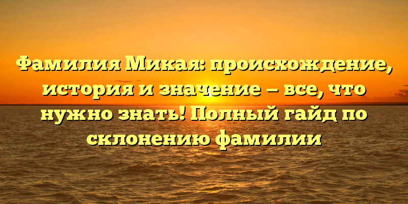 - Фамилия Микая: история, происхождение и значение в подробном гайде по склонению