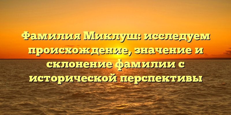 - Раскрываем тайны фамилии Миклуш: происхождение, значение и склонение в историческом контексте