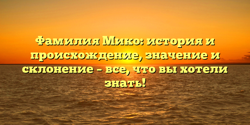 - Фамилия Мико: происхождение, значение и склонение — все, что стоит знать о своих корнях
