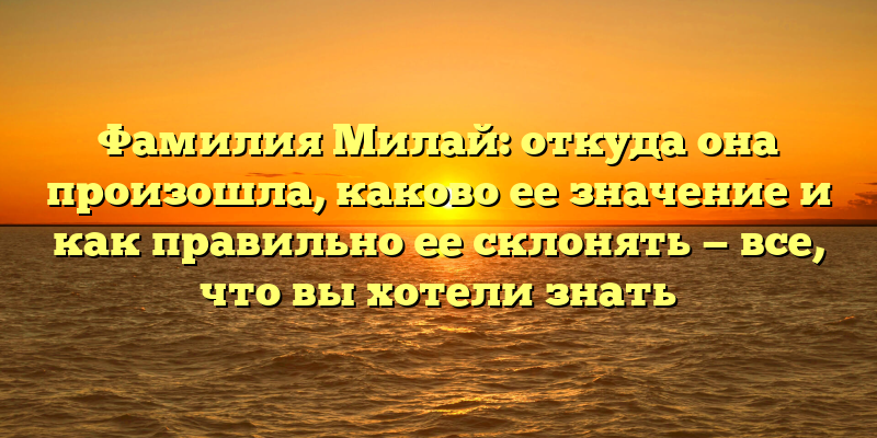 - Фамилия Милай: происхождение, значение и правильное склонение — полный гид для любопытных