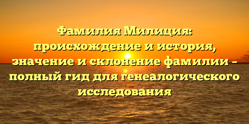- История фамилии Милиция: от происхождения до значимых личностей — все, что нужно знать для генеалогического исследования