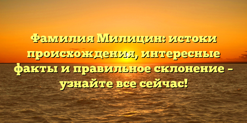 - Раскрываем тайны фамилии Милицин: происхождение, удивительные факты и правильное склонение – читайте сейчас!