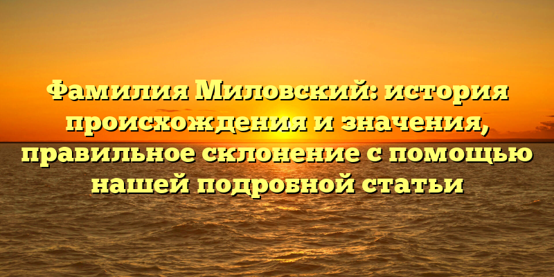 Фамилия Миловский: история, значение и правильное склонение при помощи нашей статьи.