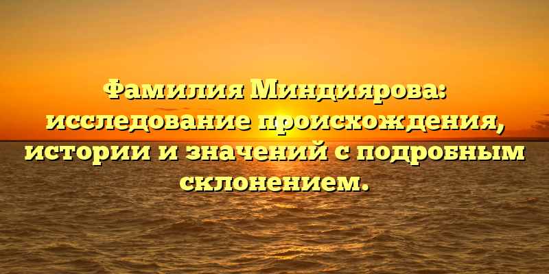 - Откройте тайны происхождения и истории фамилии Миндиярова: полное исследование и значений с подробным склонением.