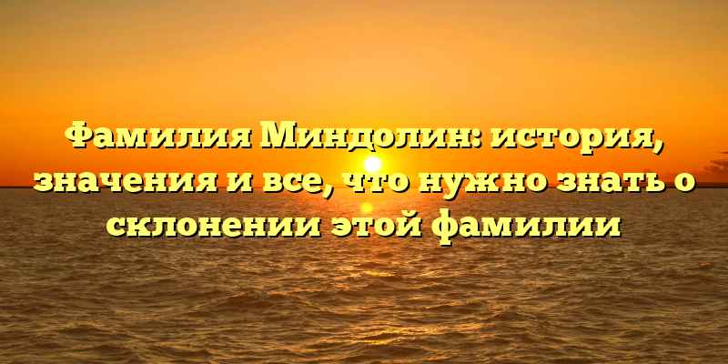 Так что же за фамилия Миндолин? Определенно есть многое, что нужно знать о ней. Продолжайте чтение, чтобы узнать больше о происхождении, значении и склонении этой фамилии.