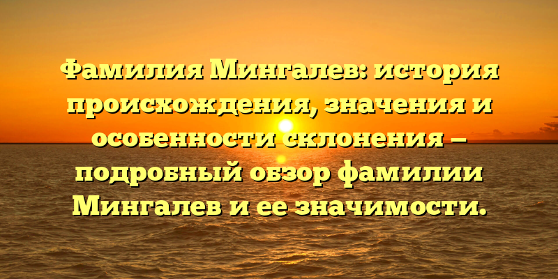 - Фамилия Мингалев: происхождение, значения и склонение — всё, что нужно знать об этой исторической фамилии