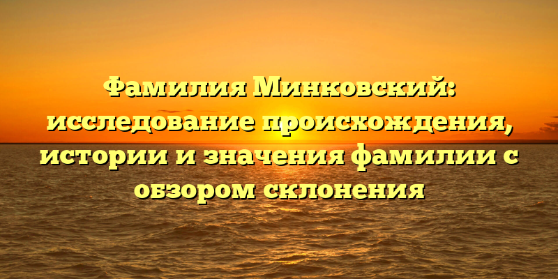 Открытие тайн происхождения и истории фамилии Минковский со взглядом на правильное склонение: исследование