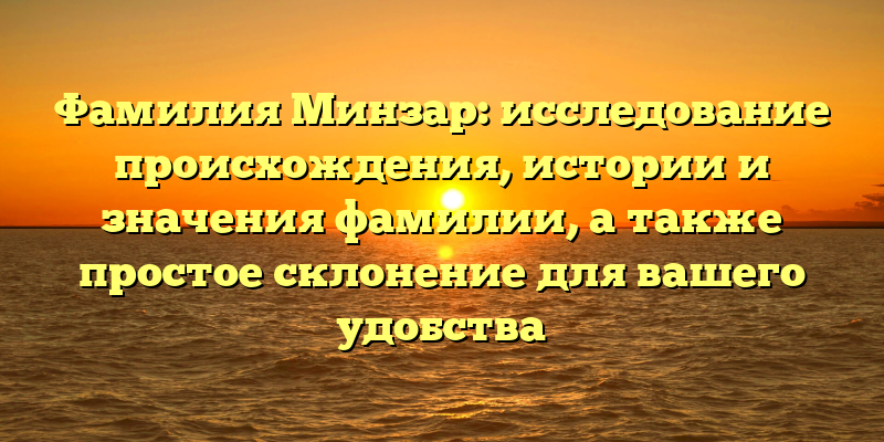 - История и значения фамилии Минзар: узнайте больше о происхождении и простом склонении вашей фамилии.