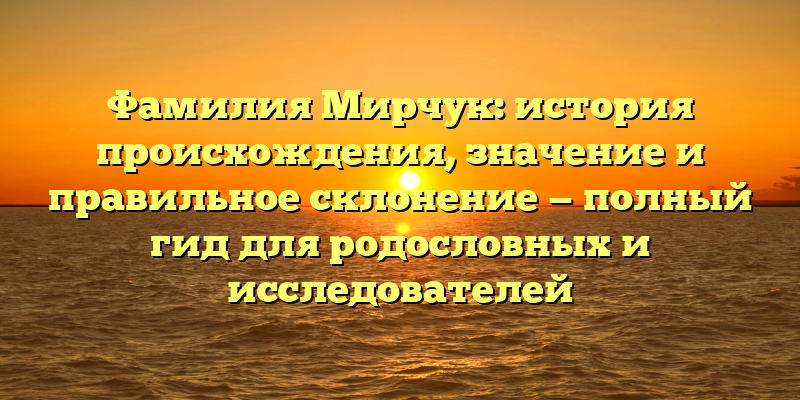 - Фамилия Мирчук: происхождение, значение и правильное склонение — исчерпывающий гид для любителей генеалогии и родословных исследований