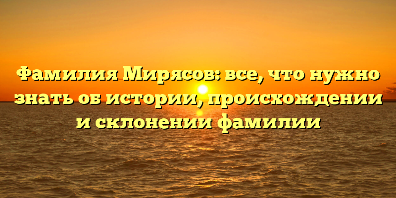 - Фамилия Мирясов: история происхождения и правила склонения в одной статье
