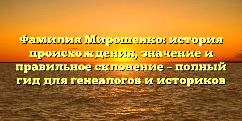 - Фамилия Мирошенко: происхождение, значения и правильное склонение — идеальный гид для любителей генеалогии и истории