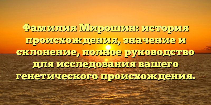 В этой статье мы подробно рассмотрим историю происхождения фамилии Мирошин, ее значение и склонение, а также предоставим полное руководство для исследования вашего генетического происхождения. Если вы интересуетесь своими корнями и хотите узнать больше о своей семейной истории, то этот материал станет для вас полезным и интересным.