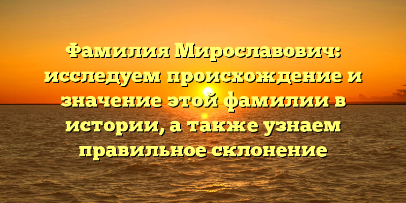 Происхождение и значение фамилии Мирославович: исследуем и учимся правильному склонению