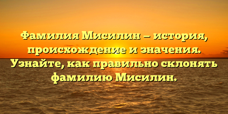 - Фамилия Мисилин: происхождение, значения и правильное склонение — все, что нужно знать