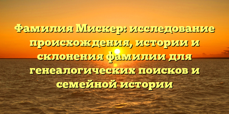 Фамилия Мискер – это необычное, но интересное имя, которое привлекает внимание исследователей рода, а также тех, кто хочет более подробно узнать свою семейную историю. Цель этой статьи – раскрыть все аспекты истории и происхождения фамилии Мискер, а также рассказать о способах склонения этого имени для успешных генеалогических поисков.
