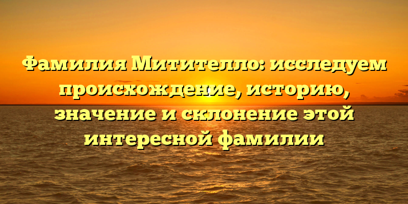 - Фамилия Митителло: происхождение, история и значение. Узнайте больше о склонении этой уникальной фамилии.