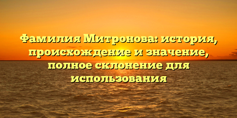- Фамилия Митронова: происхождение, история и правильное склонение для использования