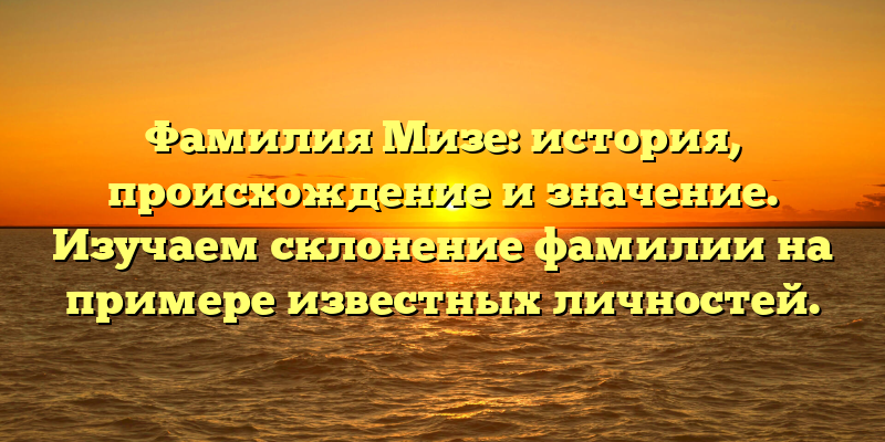 - Мизе: происхождение, история и склонение фамилии на примере известных личностей.