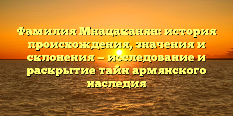 В этой статье мы рассмотрим историю происхождения фамилии Мнацаканян, ее значения и использование в склонении. Мы также исследуем тайны армянского наследия, связанные с этой олдовой фамилией.