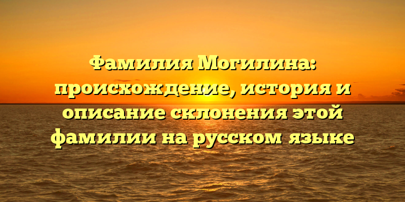 В этой статье мы рассмотрим происхождение фамилии Могилина, ее историю и сообщим о правилах склонения на русском языке. В процессе изучения этих тем вы не только узнаете об увлекательной истории этой фамилии, но и улучшите свои навыки русского языка.
