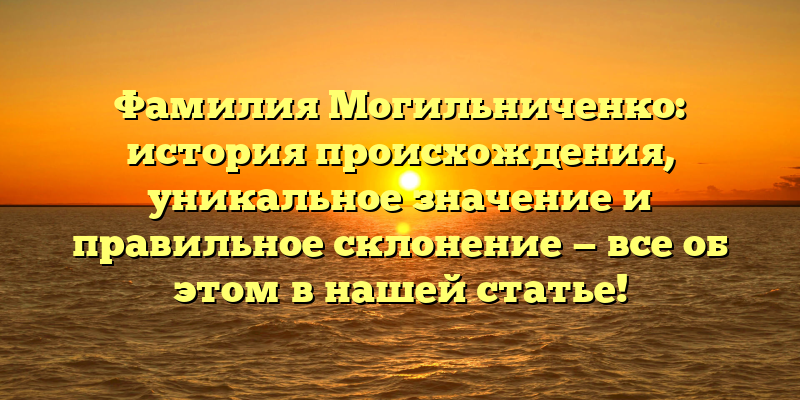 Узнайте все о фамилии Могильниченко: происхождение, значение и склонение в нашей статье!