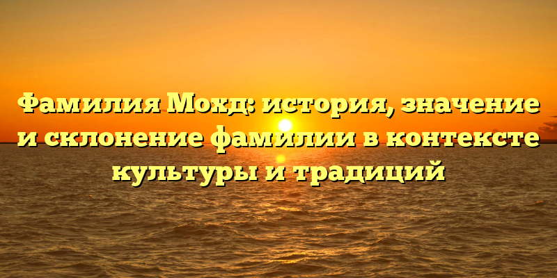 - Фамилия Мохд: исследование значимости, склонения и истории этой фамилии в различных культурах и традициях
