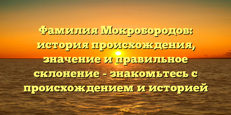 - Фамилия Мокробородов: происхождение, значение и правильное склонение в одной статье