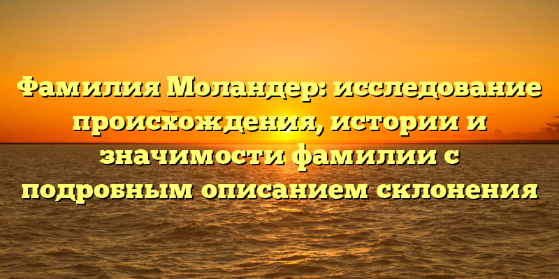 - Раскрываем тайны фамилии Моландер: история, происхождение и склонение в одной статье.