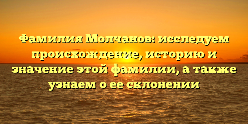 - Фамилия Молчанов: происхождение, история и значение, а также правильное склонение — все, что нужно знать