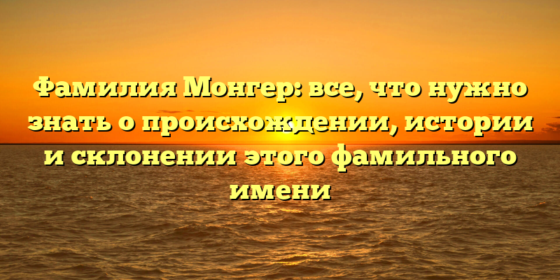 - История и происхождение фамилии Монгер: познакомьтесь с тайнами своего фамильного имени