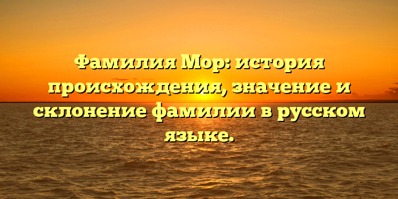 - Фамилия Мор: происхождение, значение и склонение в русском языке – исследуем историю чрезвычайно интересной фамилии!