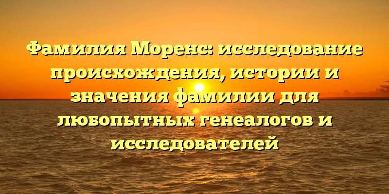 Фамилия Моренс: раскрываем тайны происхождения и истории для генеалогов и любопытных исследователей
